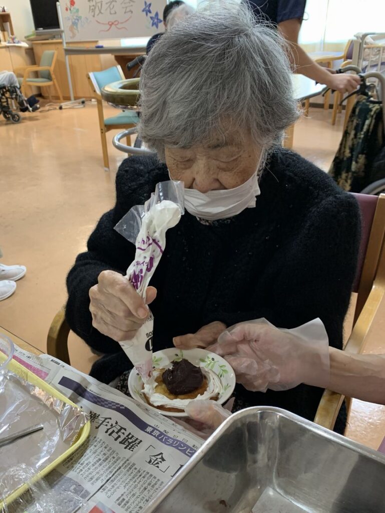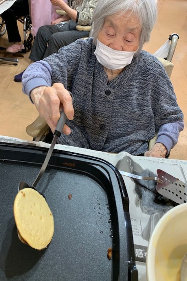 利用者の皆さんで楽しく’’栗どら焼き’’を作りました!