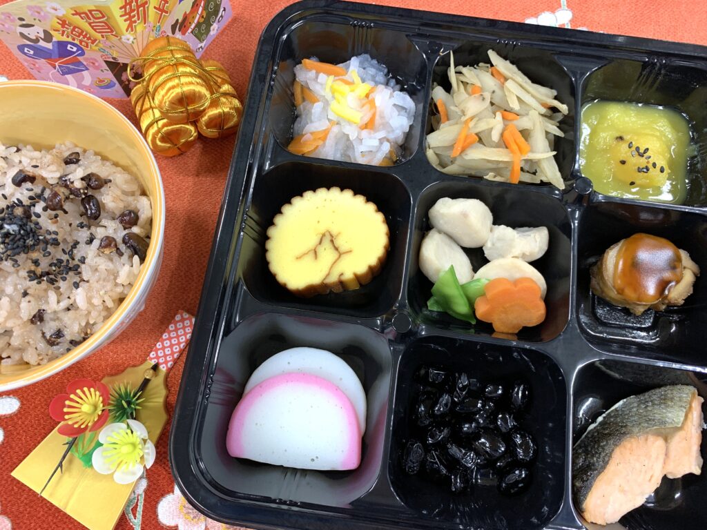 利用者さんからは「豪華なおせちだね。美味しかった!」「赤飯の豆が軟らかくて食べやすかった。」