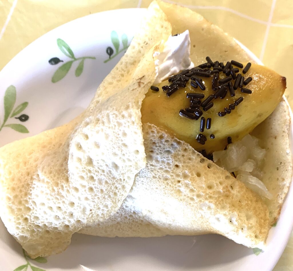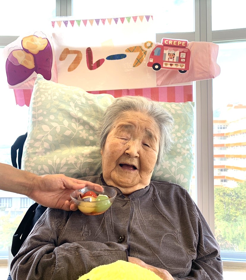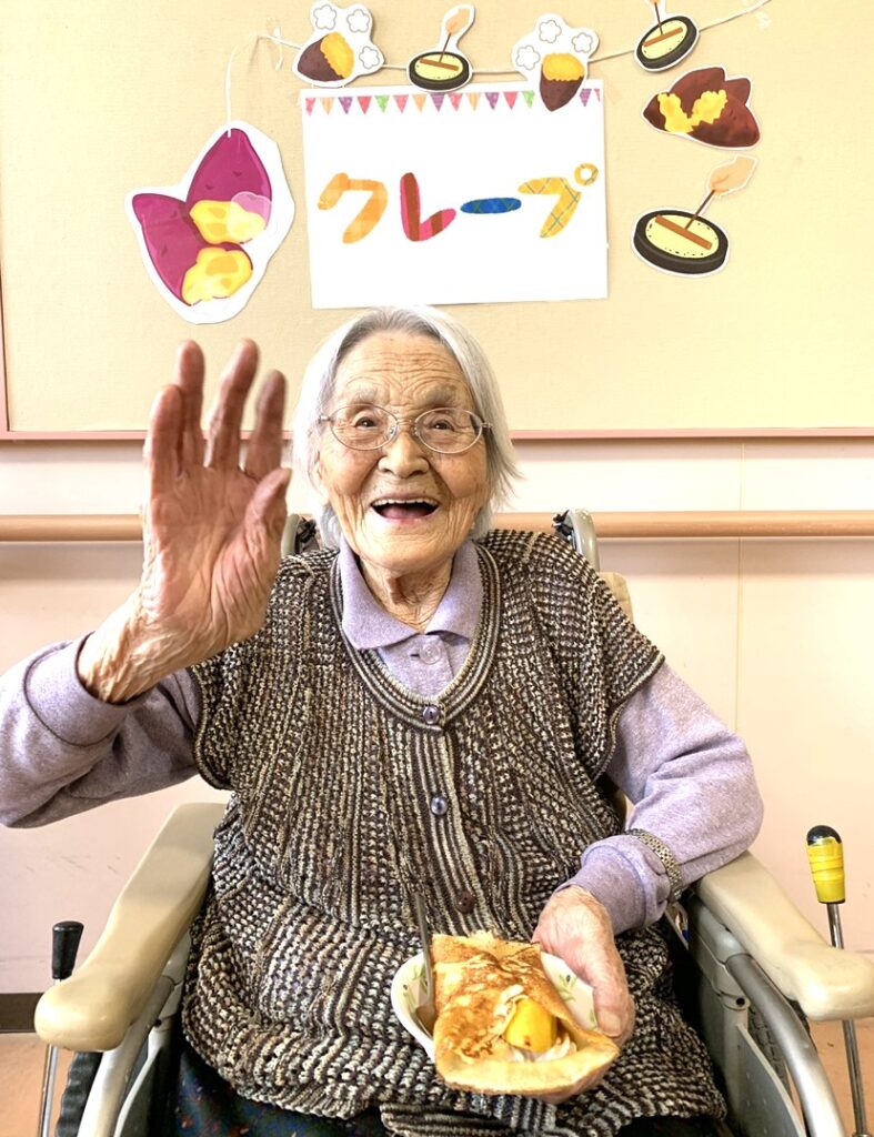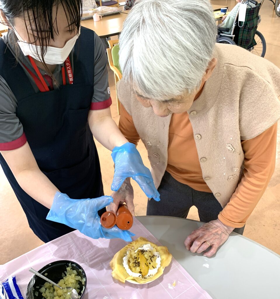 10月のわくわくメニューは、利用者の皆さんでスイートポテト入りの手作りクレープを作りました♪