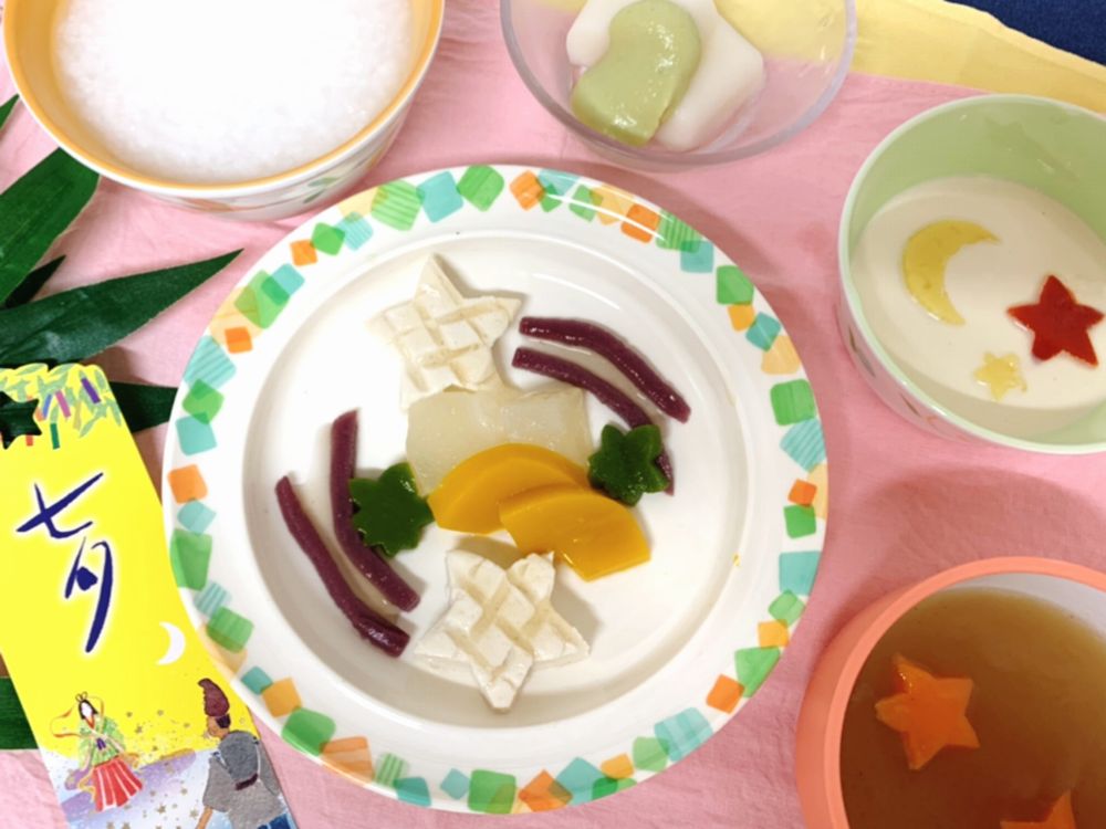 咀嚼・飲み込みが難しい方は、星空をイメージした夏野菜の炊き合わせで、可愛らしい盛り付けでした。