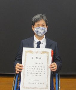 医療法人銀門会 法人事務部 在宅事務課の内藤修主任が、この度 令和2年度障害者雇用優良事業所・優秀勤労障害者表彰において山梨県知事表彰 優秀勤労障害者表彰を受賞しました。当法人に入職してから15年、不断の努力による誠実かつ勤勉な仕事ぶりが認められての受賞となりました。内藤修さん、受賞本当におめでとうございます。今後のますますの活躍をお祈りします。
