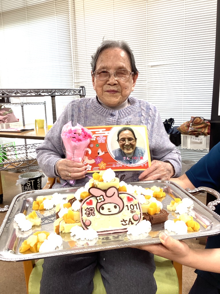 甲州デイサービスセンター一宮事業所の利用者さんが、なんと101歳のお誕生日を迎えられました。