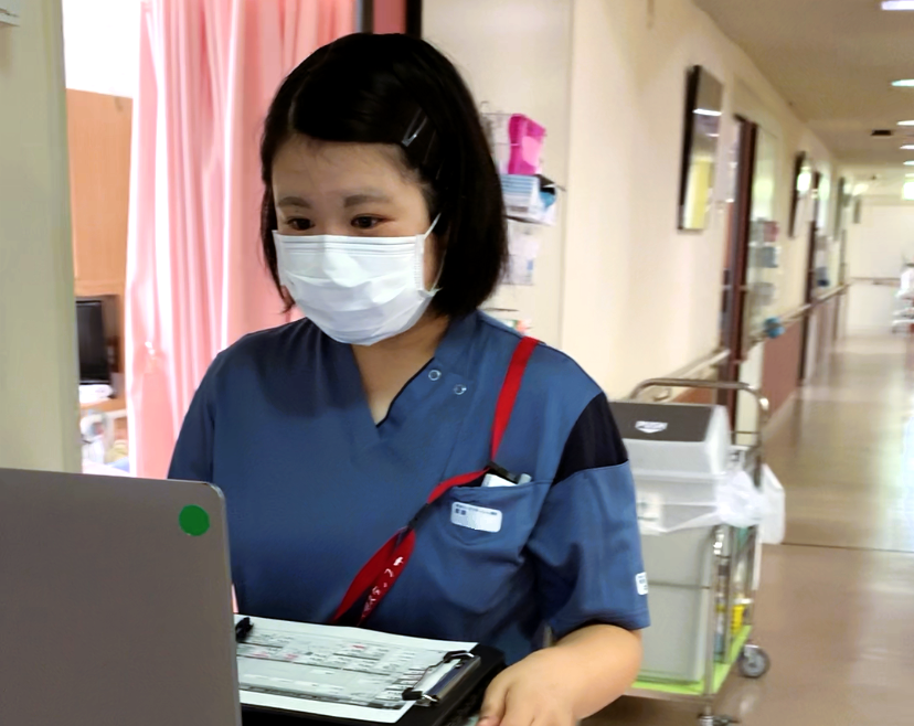 担当患者さんの体調管理や医療処置を実施し、患者さんが安全にリハビリができるよう患者さんの看護ケアに関わっています。