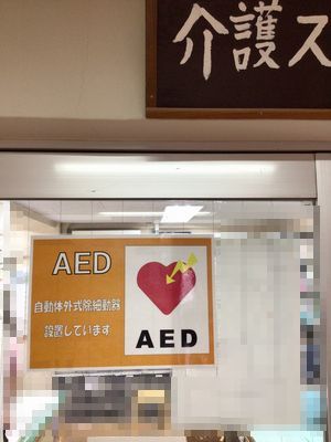 ※当施設のAEDは2階介護ステーション入って左側に置いてあります。